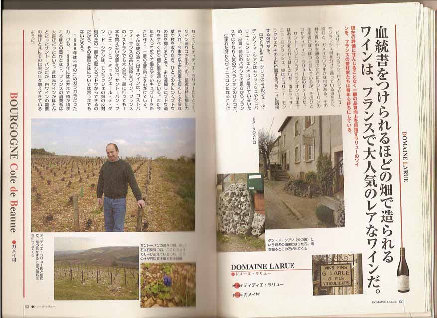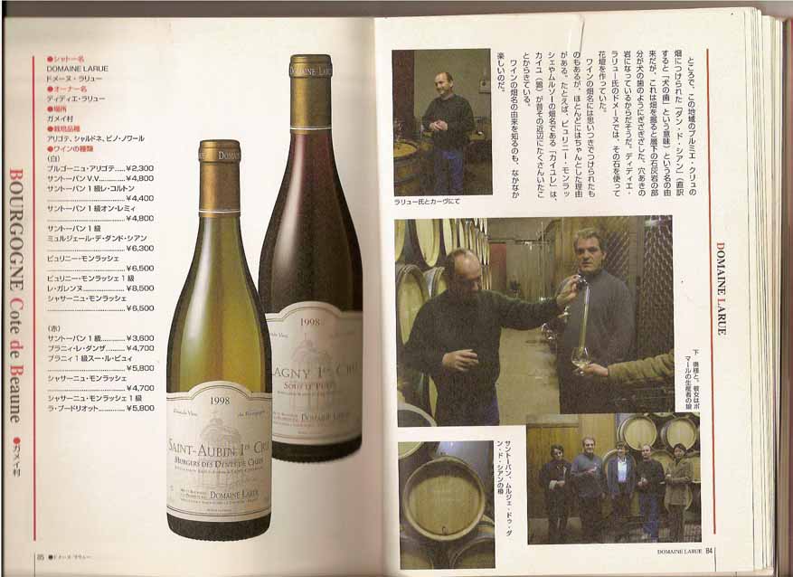 リュリー村の隣に位置する小さなガメイ村にドメーヌはあり、40歳くらいで身長は165センチ程、柔和な笑顔にまじめな性格がにじみ出る瞳のラリューが造るワインは、畑のテロワールがよく現れた素直な良質なワインです。特にサントーバン・ダンドゥシャンは、ミネラル分の多い犬の歯によく似た大きな石がゴロゴロ出てくる畑でコク、エレガントさのある群を抜く白ワインが生まれる。ア